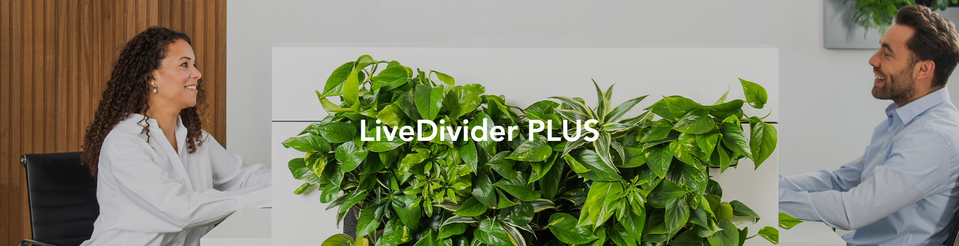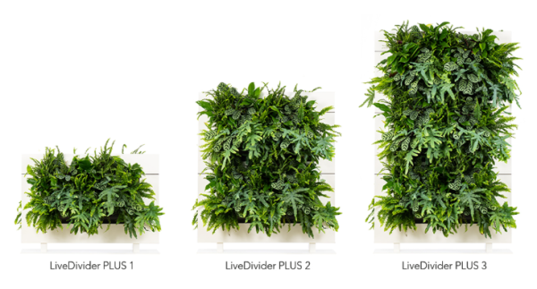 Το LiveDivider PLUS είναι ένα αρθρωτό πράσινο διαχωριστικό χώρου. Το μοναδικό αυτό σύστημα επιτρέπει τη στοίβαξη μονάδων με εναλλάξιμες κασέτες που λειτουργούν ως ζαρντινιέρες, με όποια διάταξη επιθυμείτε. Έτσι προσφέρει μεγαλύτερη ελευθερία στην ευέλικτη διαμόρφωση των χώρων, περιβάλλοντας ταυτόχρονα τους ανθρώπους με πράσινο.