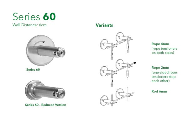 Σειρά 60 - Η σειρά 60 είναι ιδανική για μεσαίο μέγεθος φυτών και αναρριχώμενα φυτά μέτριας ανάπτυξης, με απόσταση από τον τοίχο 6 cm. Διατίθεται επίσης μια εκδοχή με ίδια απόσταση από τον τοίχο (6 cm) αλλά μικρότερη βάση στήριξης.