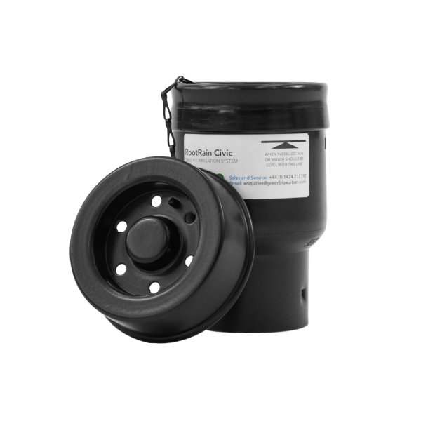 Το RootRain Civic είναι ένα σύστημα άρδευσης μεγάλης χωρητικότητας, με σταθερή σχάρα εισόδου και καπάκι από ανοδιωμένο αλουμίνιο, στερεωμένο με αλυσίδα. Είναι κατάλληλο για φύτευση δέντρων σε ανοιχτούς χώρους πρασίνου και πρανή δρόμων. Δημοφιλές στους αρχιτέκτονες τοπίου και τους εργολάβους, το RootRain Civic έχει χρησιμοποιηθεί ευρέως σε έργα με υψηλές προδιαγραφές.